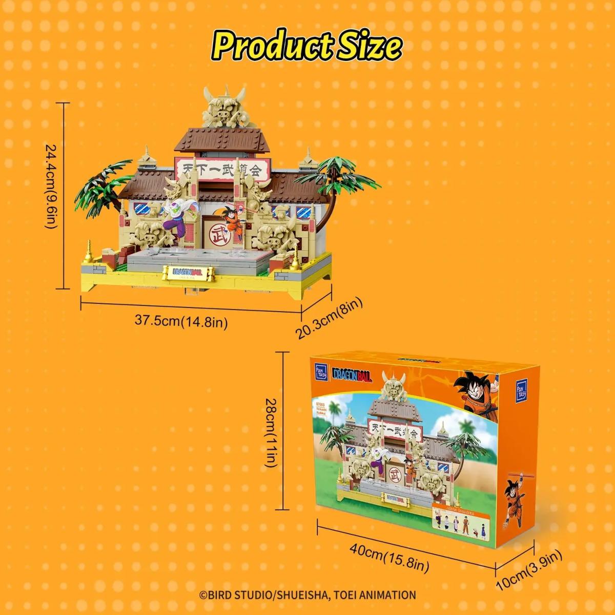 Ce diorama à construire du tenkaichi budokai réalisé par Pantasy est composé de 776 briques. Chaque détail du décor iconique a été fidèlement reproduit : la scène de combat, le bâtiment principal et les symboles du championnat mythique de la série.